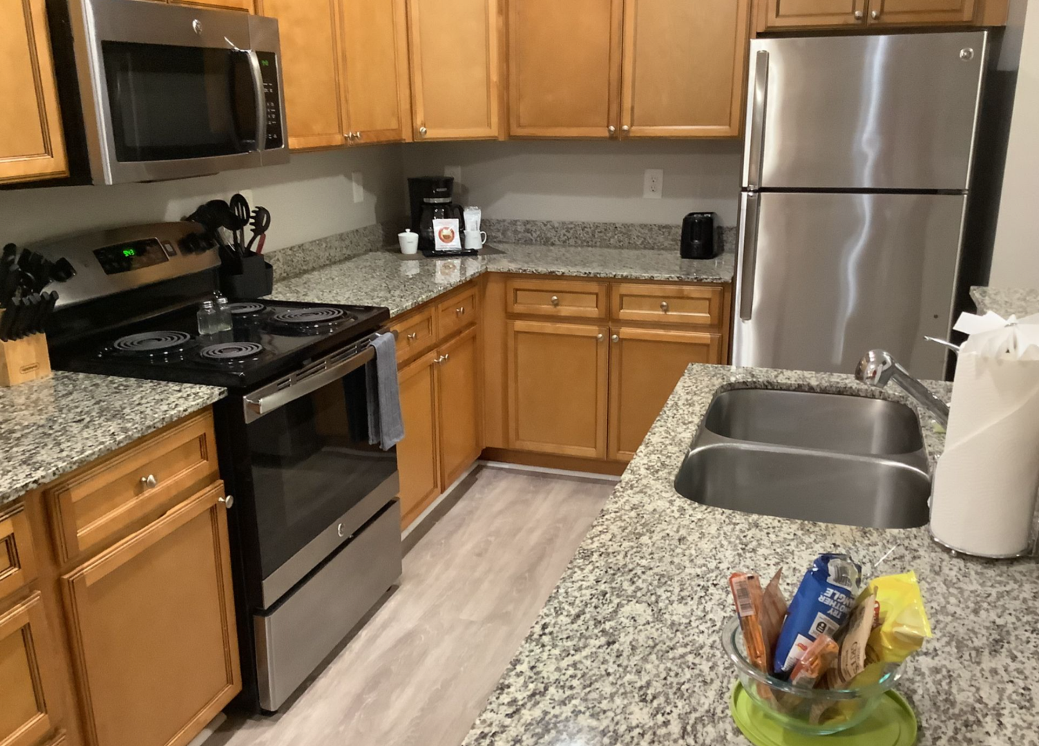 Our stylish and spacious three-bedroom apartment homes is equipped with a designer gourmet kitchen that feature granite countertops, stainless steel appliances and plenty of cabinet space. Our home also feature relaxing soaking tubs, washer and dryer connections and patios/balconies with extra storage. Every apartment has been designed and built with your comfort and convenience in mind. Plus tax of 11% 30-day lease is required. 91-day lease is tax-exempt.